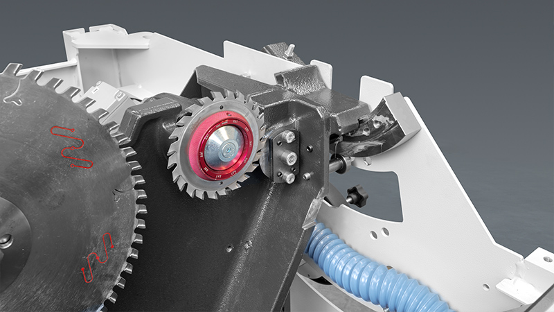 Pila disponuje hlavním motorem s automatickou brzdou o výkonu 7 kW s možností ruční změny otáček na 3,4 nebo 5tis/min. Max průměr pilového kotouče je 500 mm bez předřezu, 350mm s předřezem. Samostatný předřez se pohodlně ovládá a seřizuje za chodu. Průměr nástroje předřezu 120 nebo 125 mm.